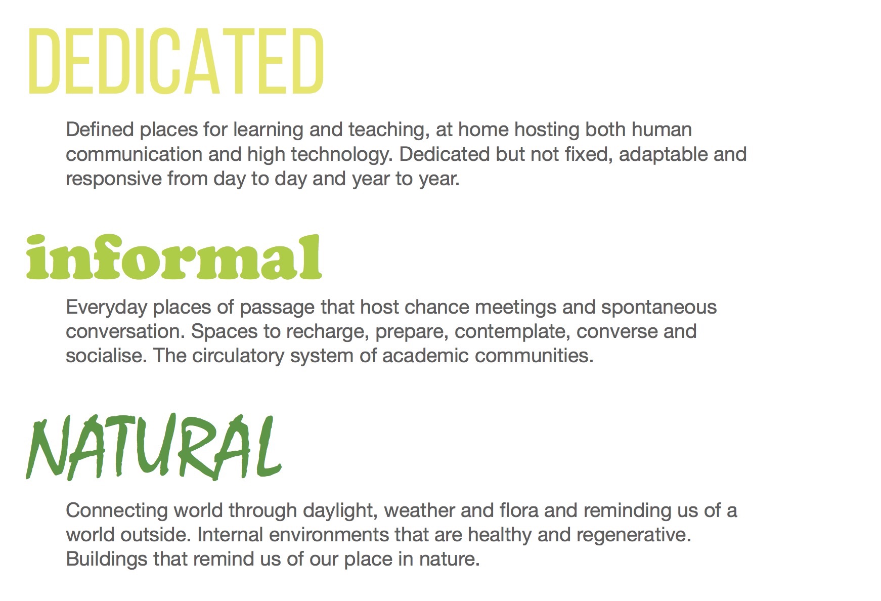 Our commissioning group then wrote a programming document that engaged with the idea that learning can take place in both structured teaching and chance encounter. These themes then formed the basis of the challenge thrown to the design students, to take a building and translate a brief into tangible propositions.