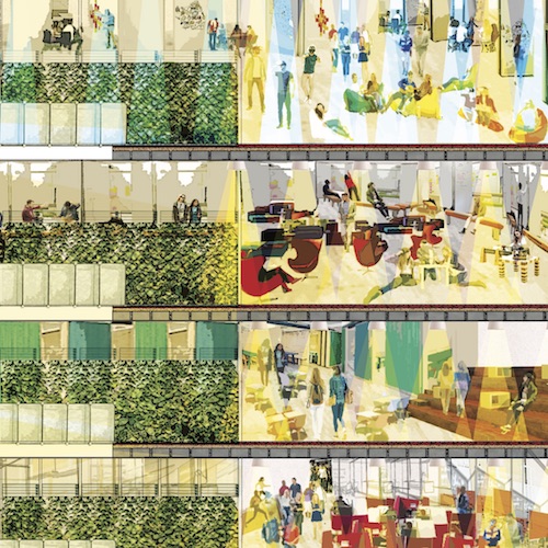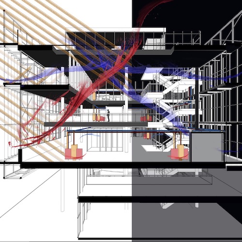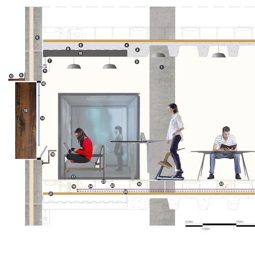 This is a collaborative process. We engage students invested in sustainable development with an interest in how this is harnessed in educational environments. They put together an aspirational programme of transformation for the study building. It forms the core of the project undertaken by students studying in MSc Advanced Sustainable Design. Through a series of collaborative teaching session between the two groups a series of building proposals have been created. They provide a tangible vision and design strategies that animate and give traction to the original programme.